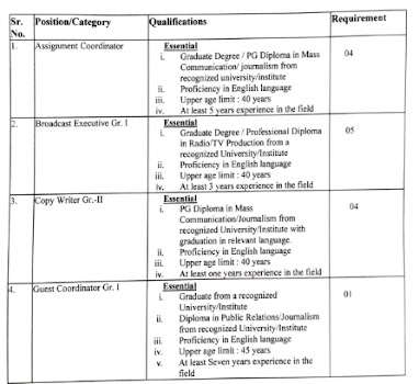 Doordarshan News, New Delhi is looking to fresh hiring of contractual engagees in various categories on annual contract basis for DD India 24x7 English News Channel. Interested candidates are required to submit their applications by registered post/courier/drop box to Deputy Director (HR), Room No. 413, 4th Floor, Doordarshan Bhawan, Tower-B, Copernicus Marg, New Delhi - 110001. The last date of submission of application is 5PM on 20.04.2021. Thedetails of educational qualifications and experience is as under:-